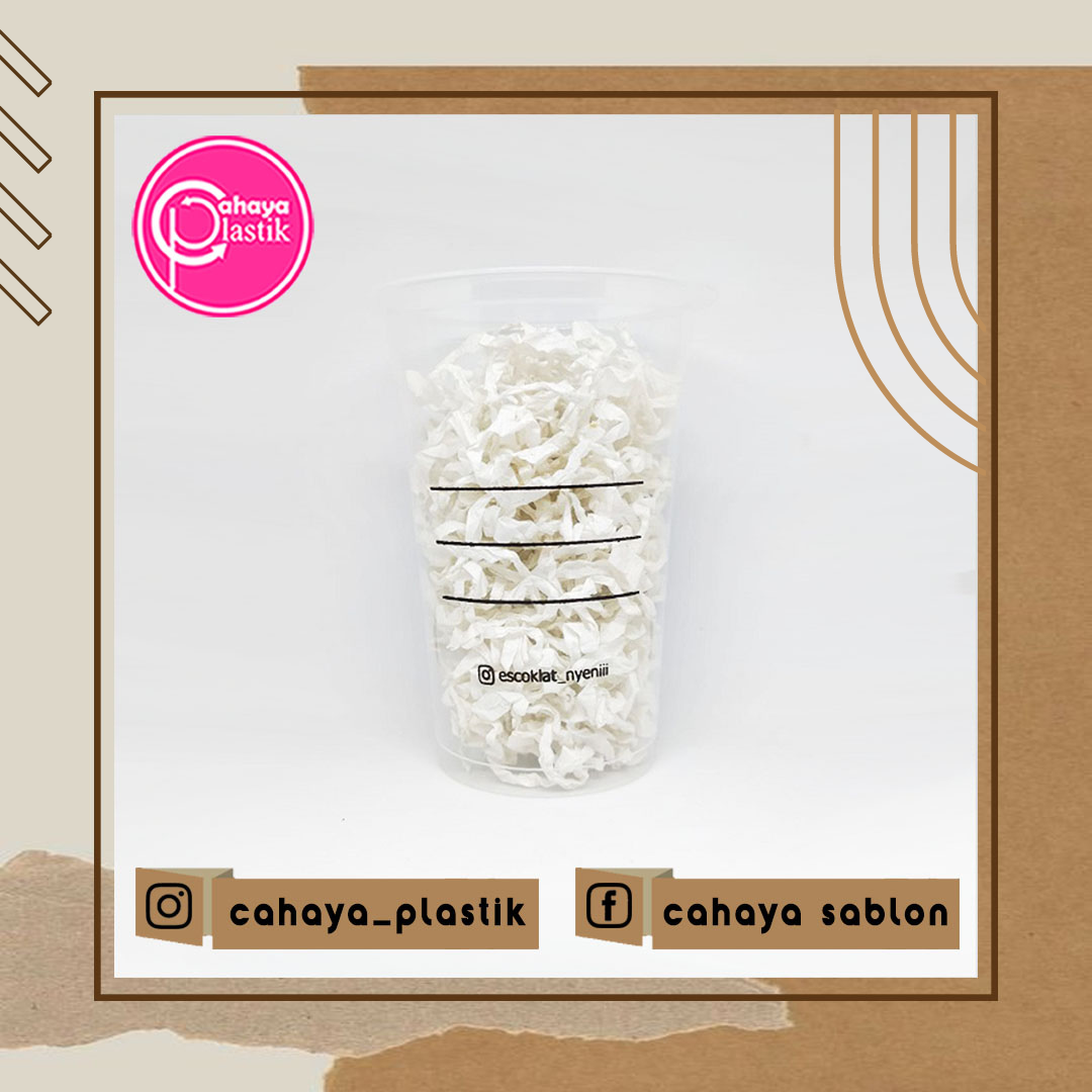 Sablon 2 warna gelas plastik 16 oz 7 gram. Kapasitas +-500 ml paling pas nih untuk take away aneka minuman anda. Banyak pilihan ukuran dan ketebalan juga tersedia disini. Anda dapat menyesuaikan dengan porsi produk sendiri. Menggunakan tinta grade A aman dan awet untuk kemasan. Mari cetak dan branding produk anda sendiri. Sehingga produk minuman makin berkelas dan berkualitas. Dapatkan banyak keuntungan dengan cetak custom produk kemasan anda.